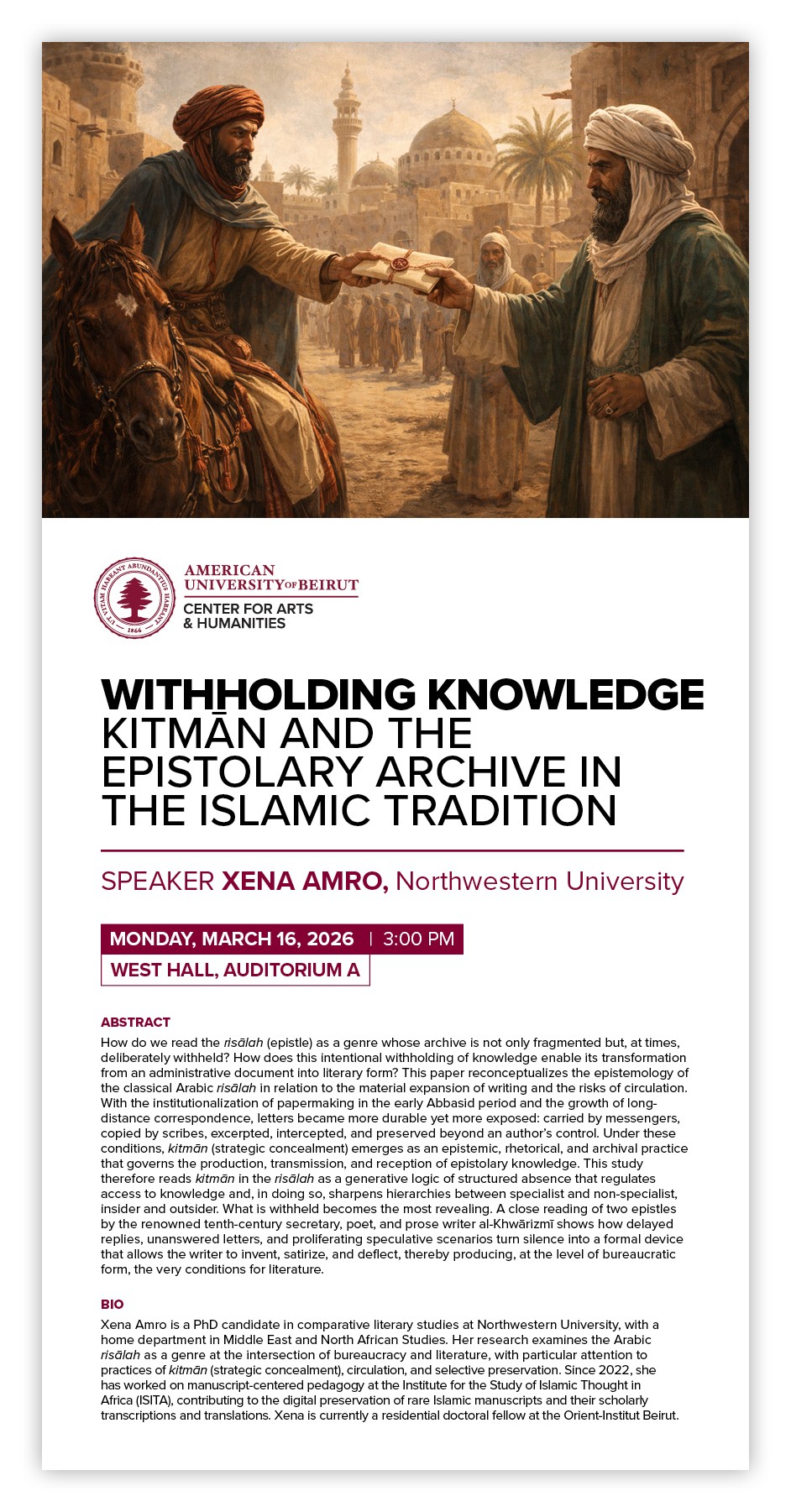 Join us for a lecture with guest speaker Xena Amro