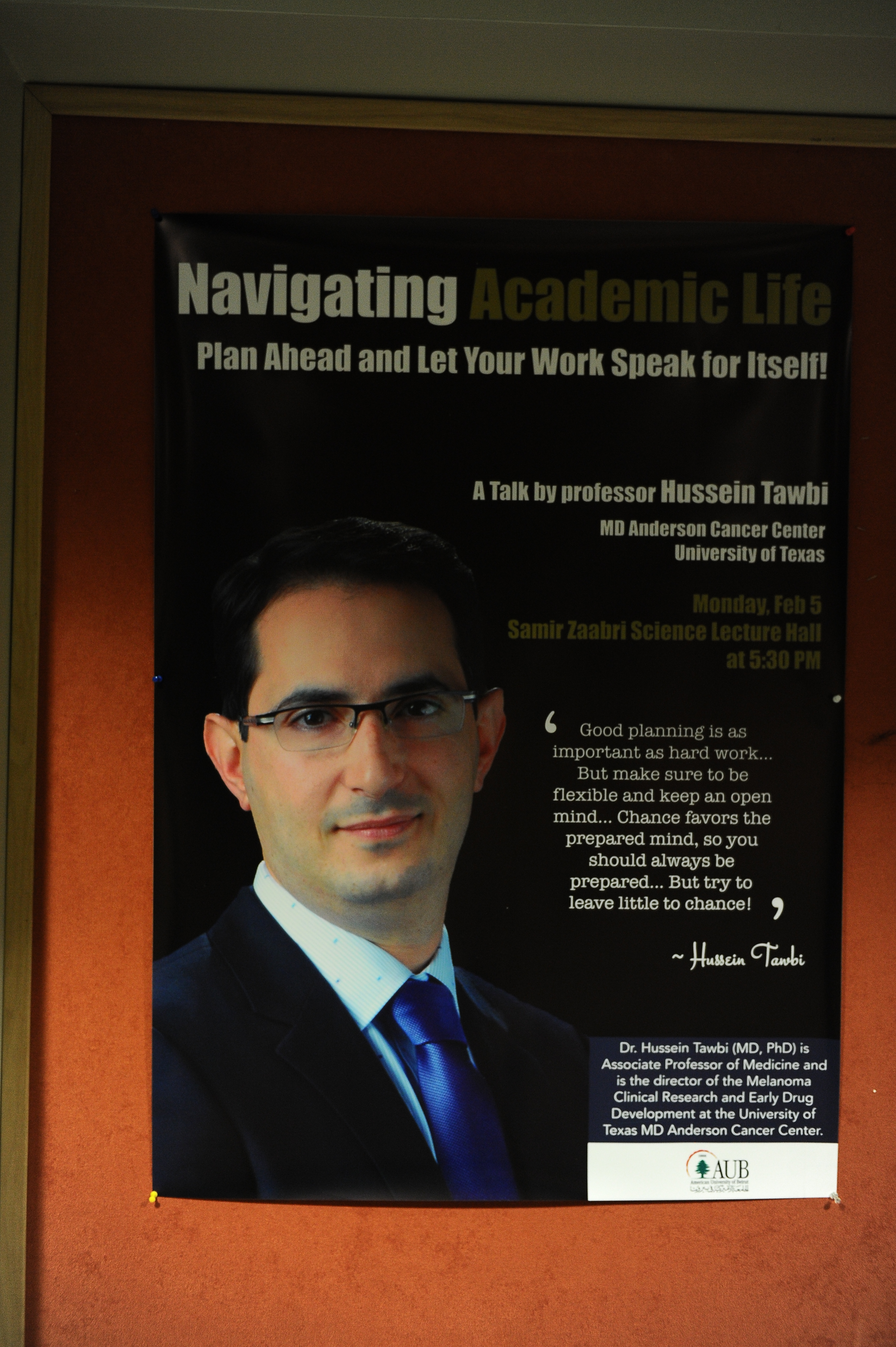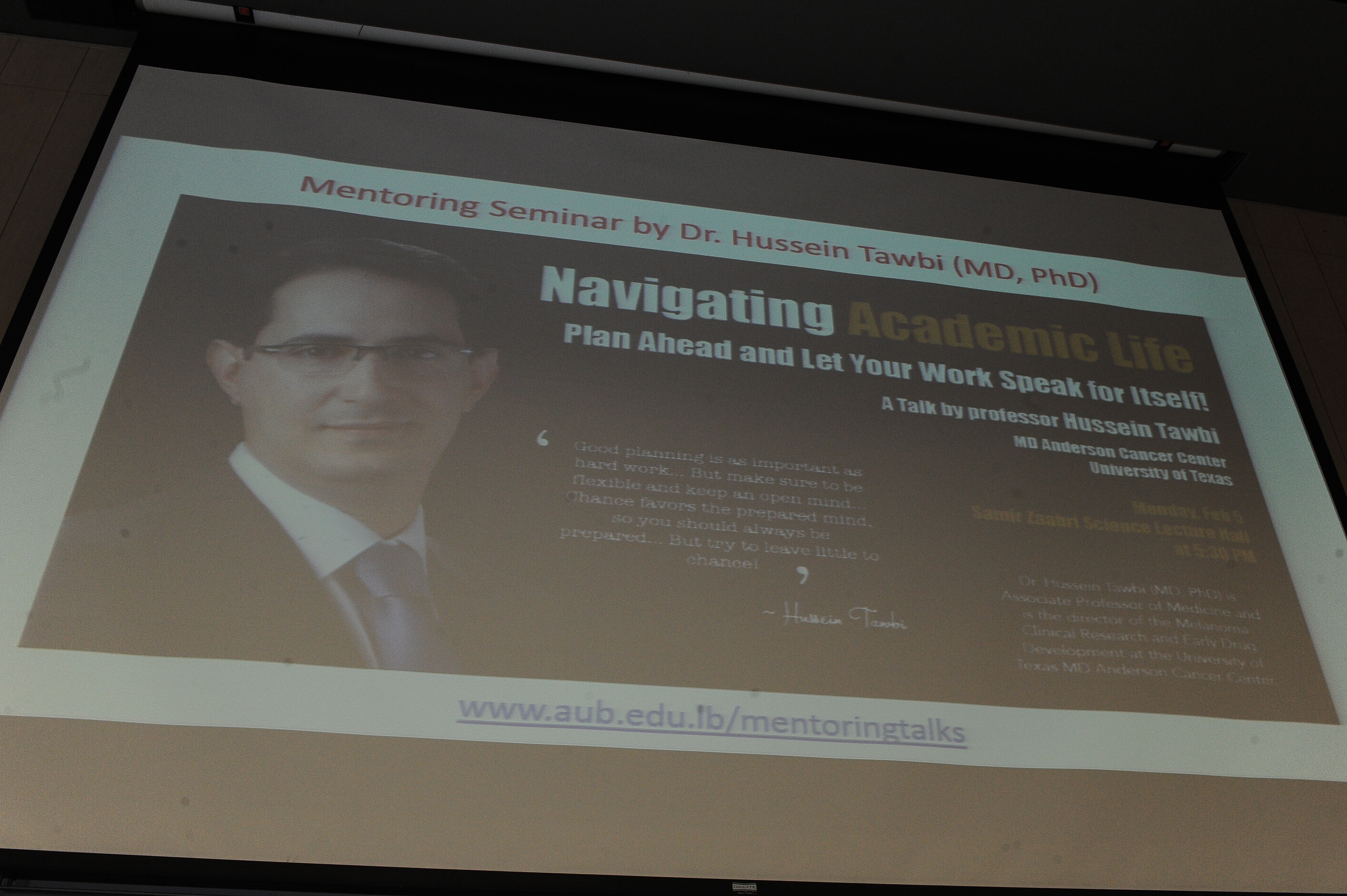 On Feb 5, 2018, Dr. Hussein Tawbi (MD, PhD) gave a mentoring talk entitled, "Navigating Academic Life- Plan Ahead and Let Your Work Speak for Itself!".