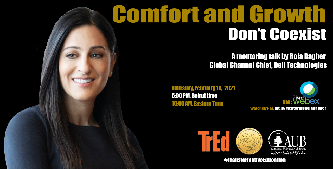 Rola Dagher, Global Channel Chief of Dell Technologies in Canada, delivered a mentoring talk entitled, "Comfort and Growth Don't Coexsit" via WebEx. Rola narrated her life story highlighting the challenges and difficult decisions she had to take throughout her rich career.
