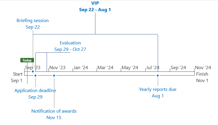 The following timeline will be observed for the upcoming exploratory research grant proposals. Submissions of the VIP proposals (at