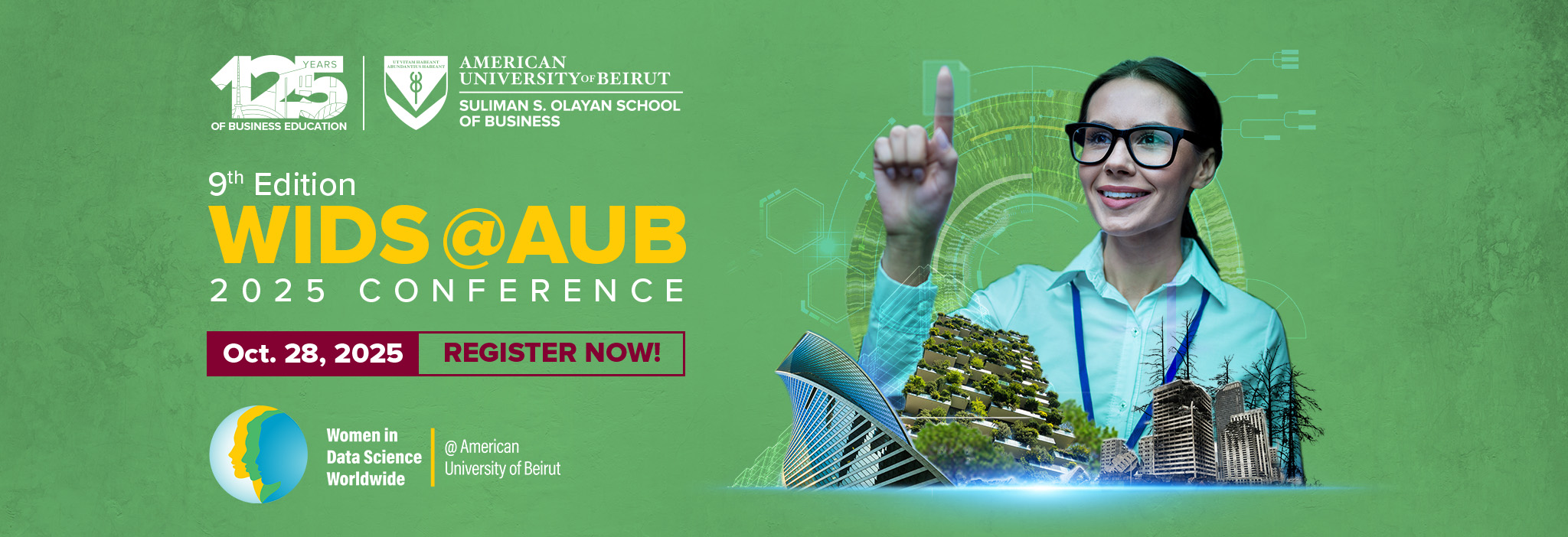 The Women in Data Science at the American University of Beirut initiative aims to inspire and educate data scientists, regardless of gender, and support Arab women in the field. WiDS @AUB provides an opportunity to hear about the latest data science research in different fields, learn how leading-edge companies are leveraging data science for success, and connect with potential mentors, collaborators, and others in the field. The initiative is directed towards business professionals, researchers, students.